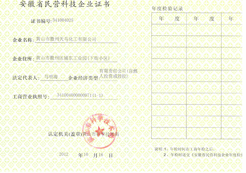 2012年安徽省民營(yíng)科技企業(yè)證書(shū)